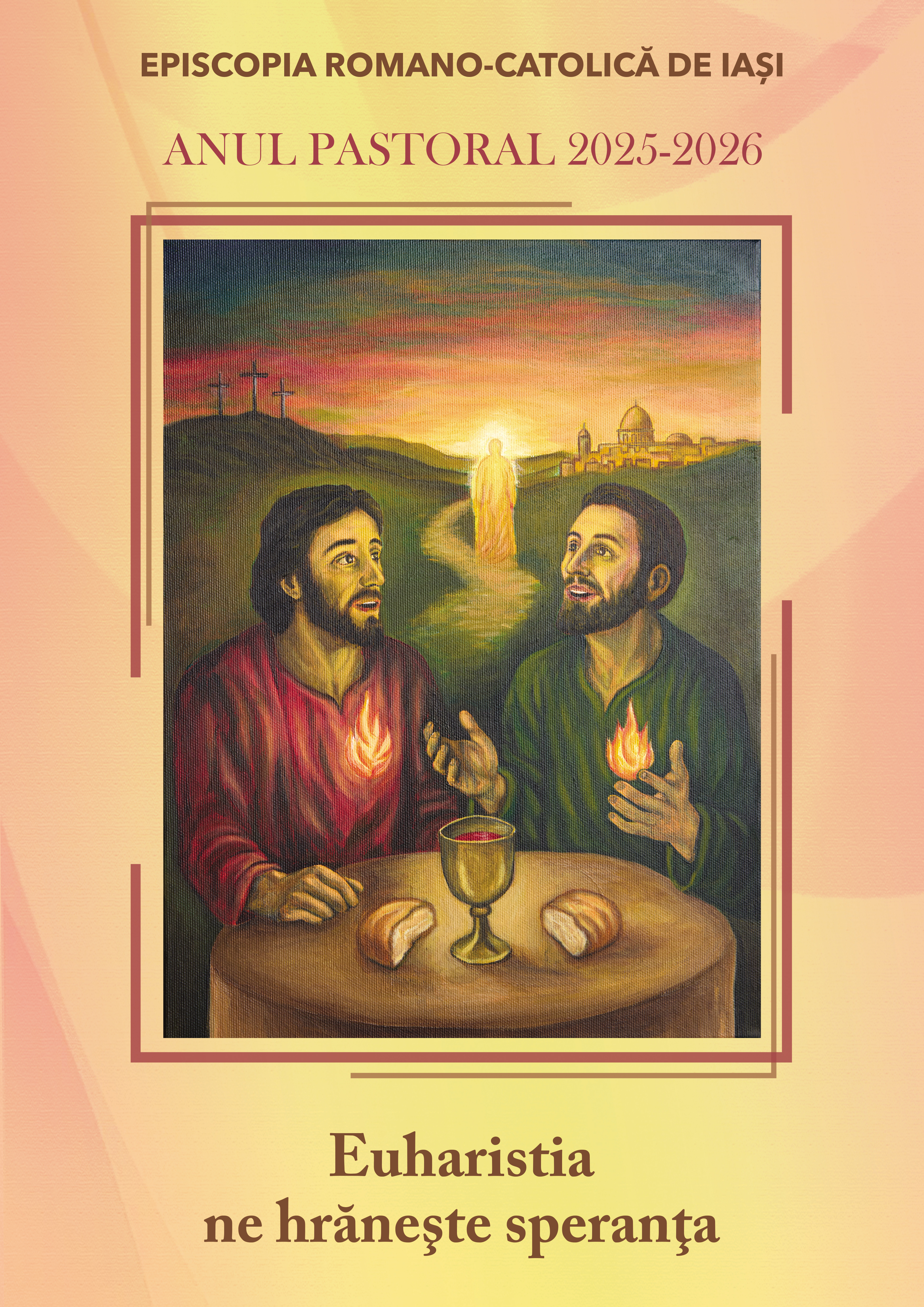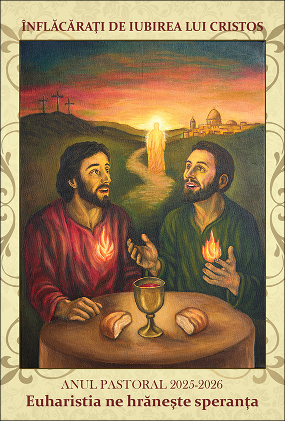 Imaginea anului pastoral 2025-2026 "Înflăcărați de iubirea lui Cristos" poate fi descărcată în format pdf (CMYK) - iconița cu rugăciunea - și în format jpeg (RGB) - afișul A3.
