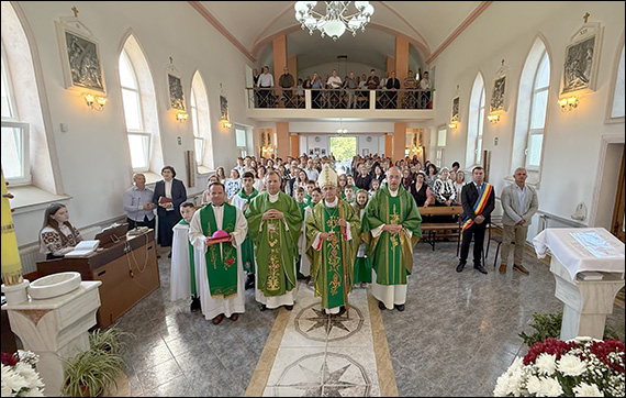 În perioada 19-21 septembrie 2025 a avut loc vizita pastorală a Preasfințitului Iosif Păuleț în Parohia "Sfânta Tereza a Pruncului Isus" din Gheorghe Doja, care a reprezentat un privilegiu deosebit pentru copiii, tinerii și toți credincioșii acestei parohii, asupra cărora s-au revărsat haruri și binecuvântări. Prima zi a fost marcată de Sfânta Liturghie celebrată de Preasfințitul Păuleț, care la predică a aprofundat inestimabila valoare a devoțiunii față de Inima Preasfântă a lui Isus. După Sfânta Liturghie, a urmat întâlnirea cu întreaga comunitate, iar apoi cu noi, tinerii, aceasta fiind un prilej unic prin care tinerii au înțeles posibilitatea trăirii vieții de sfințenie chiar și în secolul vitezei și al digitalizării, avându-l ca exemplu pe Sfântul Carlo Acutis, proaspăt canonizat, un reper nobil și concret al zilelor noastre, dar mai ales al celor tineri. Cea de-a doua zi a vizitei a fost deschisă de întâlnirea cu copiii. Aceștia au avut parte de o cateheză inedită în care Preasfințitul Iosif Păuleț a aprofundat conceptele esențiale ale vieții de credință, explicându-le cât de importante sunt respectul și recunoștința. După aceste momente desenate în nuanțele, zâmbetele și energia copilăriei, Preasfințitul a vizitat trei persoane bolnave din sat, ducând astfel și la ele bucuria și mângâierea lui Dumnezeu prin prezența Preasfinției Sale. A urmat apoi o scurtă vizită la cimitir, unde episcopul s-a rugat în special pentru răposații parohiei, precum și pentru preoții răposați care au activat în această parohie. După-amiază au fost audiențe în particular, moment în care credincioșii au avut posibilitatea să interacționeze personal cu Preasfințitul. La predica de la Sfânta Liturghie de sâmbătă, Preasfințitul ne-a îndemnat să avem devoțiunea și față de Inima Neprihănită a Mariei. După Sfânta Liturghie a stat de vorbă cu membrii celor două consilii parohiale, Consiliul Pastoral și Consiliul Economic. Credincioșii au avut parte de binecuvântări și haruri, cu atât mai mult când capela mortuară, proaspăt inaugurată de către părintele paroh, Daniel Cobzaru, a fost sfințită, cu această ocazie specială, de către Preasfințitul Iosif Păuleț, după Sfânta Liturghie din cea de-a treia zi, duminică, la 10:30, la sfârșitul căreia părintele paroh a mulțumit lui Dumnezeu, Preasfinției Sale și tuturor celor prezenți și care s-au implicat în organizarea vizitei pastorale. Plini de emoție, atât Preasfințitul, cât mai ales credincioșii Parohiei "Sfânta Tereza a Pruncului Isus" au lăsat ca harurile preasfinte ale lui Dumnezeu să coboare în mijlocul acestei parohii și, în cântece de bucurie și slavă, au continuat procesiunea de final, oferindu-i lui Dumnezeu mulțumire și recunoștință pentru aceste zile binecuvântate în care episcopul de Iași a fost în mijlocul credincioșilor. Amintirea acestor trei zile deosebite își vor lăsa amprenta pentru mult timp în inimile credincioșilor, dar și a comunității care a fost profund încântată de prezența, învățăturile și spiritul plin de evlavie inspirat de Preasfințitul Iosif Păuleț. Leonard Iacobuș și Carina Iacobuș * * * Mai multe imagini de la acest eveniment puteți vedea în Albumul foto: 19-21 septembrie: Vizită pastorală a PS Iosif Păuleț în Parohia Gheorghe Doja * * * Din arhiva ercis.ro: Secțiunea "Anul pastoral 2024-2025. "Discipoli misionari ai lui Cristos" Programul vizitelor pastorale ale PS Iosif Păuleț în Dieceza de Iași (începând din octombrie 2022) Secțiunea "Vizite pastorale"