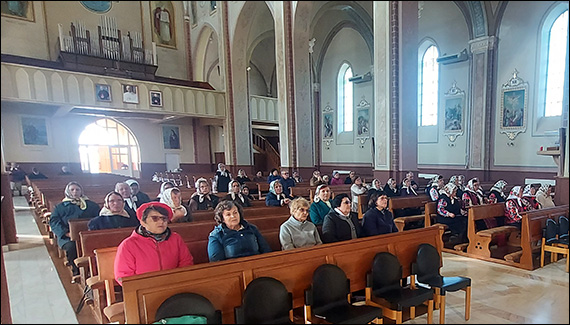 Programul a început la ora 9:00, când biserica a răsunat de "Coroana franciscană", o rugăciune care aduce înaintea lui Dumnezeu momentele de bucurie din viața Preacuratei Fecioare Maria. Versetele și meditațiile rostite de participanți au creat un cadru de tăcere, reculegere și încredințare, făcându-i pe toți să simtă că sunt părtași la aceeași familie spirituală.