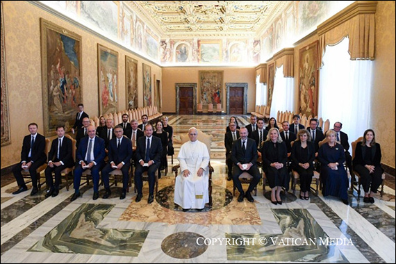 Dragi prieteni, vă mulțumesc pentru această vizită. Vă mulțumesc pentru munca pe care o faceți în promovarea dialogului între toate popoarele și a respectului pentru toate persoanele și cer binecuvântarea Domnului asupra voastră și a muncii voastre. Vă mulțumesc foarte mult.