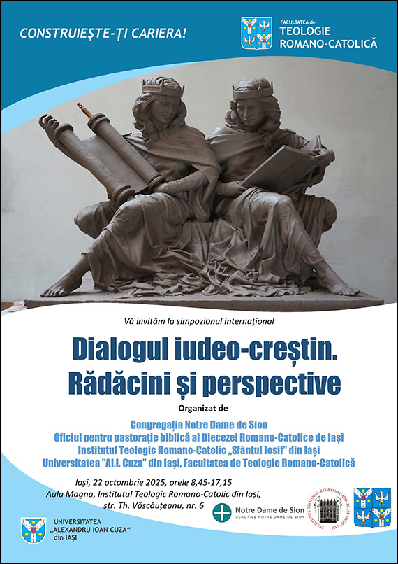 Congregația "Notre Dame de Sion" împreună cu Oficiul pentru pastorație biblică al Diecezei Romano-Catolice de Iași, Institutul Teologic Romano-Catolic Iași și Facultatea de Teologie Romano-Catolică au bucuria de a vă invita la un simpozion internațional care are ca temă principală dialogul Bisericii Catolice cu poporul evreu bazat pe Sfintele Scripturi comune.