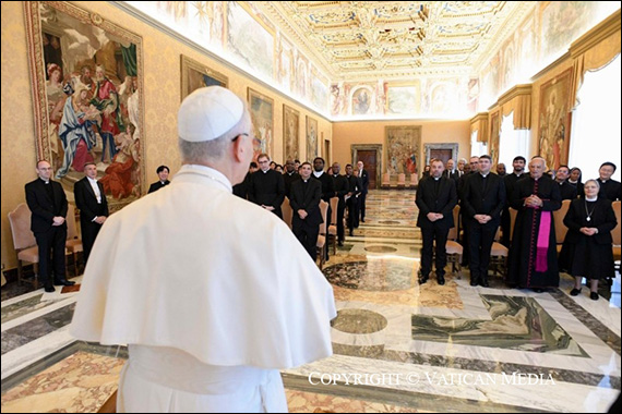 Mereu concentrată asupra misiunii, Biserica, chemată astăzi să consolideze stilul său sinodal, prețuiește cu bucurie aceste experiențe ecleziale și, păstrându-le ca moștenire spirituală, găsește în ele un stimulent pentru a crește comuniunea. Când, pentru promovarea umană și pentru gloria lui Dumnezeu, ne ascultăm unii pe alții și respectăm ceea ce Duhul Sfânt inspiră în fiecare credincios, noi discernem semnele timpurilor cu mai multă claritate și încredere, lucrând împreună la construirea Împărăției lui Cristos. Și faptul de a fi la Roma pentru a aprofunda studiul teologiei sau al științelor umane și sociale, implică să exersăm din ce în ce mai mult arta ascultării, atât de importantă pentru unitatea dintre noi, discipoli ai Domnului.