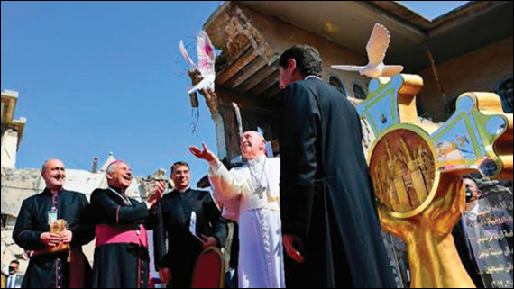 Poate că cele mai durabile semne ale acestei angajări rămân gravate în cele 47 de călătorii apostolice internaționale ale sale. Printre acestea, una dintre cele mai profetice a fost vizita sa în Irak în martie 2021. Imaginile Papei Francisc la Mosul - stând în mijlocul dărâmăturilor caselor și bisericilor devastate de ISIS - sunt printre cele mai puternice ale pontificatului său. În acel loc rănit, el a declarat: "Astăzi, în pofida a toate, ne reafirmăm convingerea că fraternitatea este mai puternică decât fratricidul, că speranța este mai puternică decât moartea, că pacea este mai puternică decât războiul".