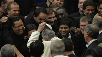 Apoi răspunde la întrebări. De exemplu cea a sicilianului părintele Marcello care cere câteva sugestii pentru "misiunea delicată de a-i însoți pe tineri în discernământul vocațional". Papa răspunde direct: "Criteriile să fie normale. Fiți atenți la acei tineri cu față de iconiță - spune el -. Pe aceia eu nu-i întreb nici Tatăl nostru. Bucuroși, sportivi, normali. Să știe să muncească, dacă studiază să știe să studieze, să-și asume responsabilitățile".