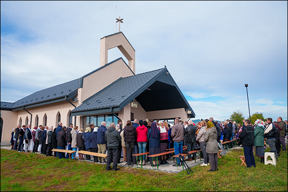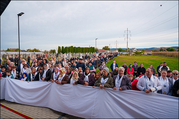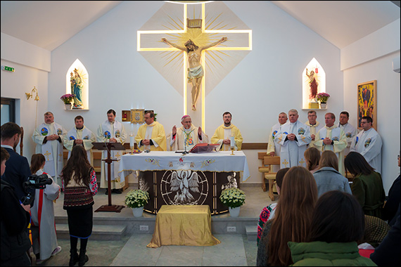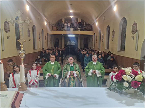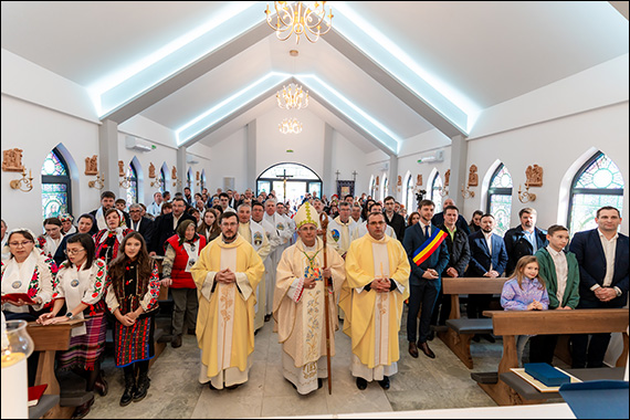 După două zile ploioase, toate fiind pregătite, a venit și ultima zi din vizita pastorală, duminică, 5 octombrie, care a culminat cu sfințirea capelei mortuare din Cimitirul "Sfântul Gheorghe", capelă care a fost închinată "Înălțării Domnului". La acest moment de sărbătoare ne-am adunat în fața capelei, la ora 9.45, recitând Sfântul Rozariu și cântând Litania Lauretană.