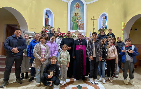 La ora 10.00 s-a întâlnit cu copiii (atât cu ministranții, cât și cei care fac parte din grupul copiilor "Atelierul Sfântului Iosif"), cu adolescenții și cu tinerii din comunitate.