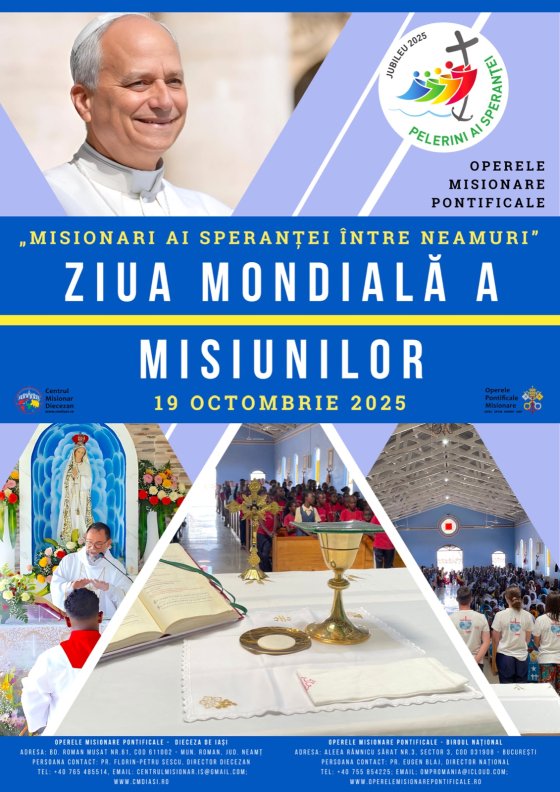 Centrul Misionar Diecezan Iași a pregătit câteva materiale pentru celebrarea Zilei Mondiale a Misiunilor, care anul acesta va fi în ziua de duminică, 19 octombrie 2025, și are tema "Misionari ai speranței între neamuri".