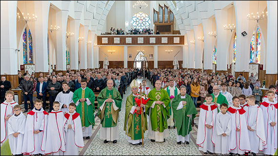 Duminică, 26 octombrie, Preasfințitul Iosif a prezidat Sfânta Liturghie solemnă de încheiere a vizitei pastorale, care a fost o adevărată sărbătoare, măreața biserică de piatră fiind plină-ochi cu oamenii care formează adevărata Biserică, poporul lui Dumnezeu unit în jurul păstorului său.