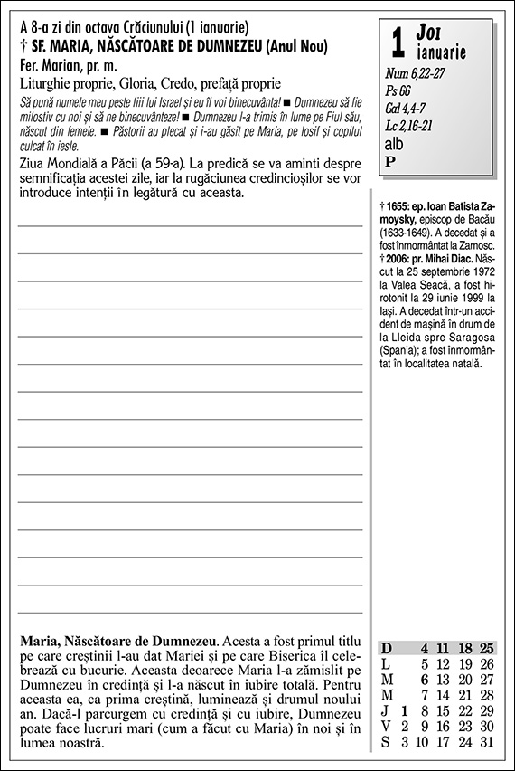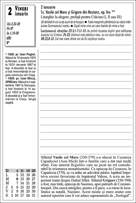 Fie ca, în noul an, Dumnezeu să-i binecuvânteze și să-i întărească pe toți cei care se vor folosi de această agendă, iar prin viețile noastre să răsune pretutindeni cântul de slavă Tatălui și Fiului și Sfântului Duh!