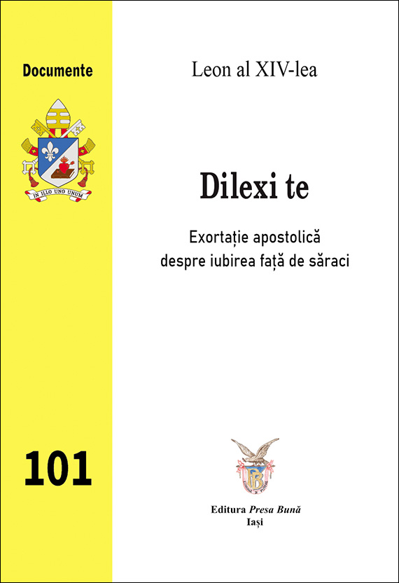 A apărut la Editura "Presa Bună" versiunea în limba română a primei exortații apostolice scrise de Papa Leon al XIV-lea, "Dilexi te". Traducerea a fost realizată de pr. Mihai Patrașcu. Cartea are numărul 101 în colecția "Documente", este în format 14x21 cm, are 90 de pagini și poate fi cumpărată din Librăria "Presa Bună" la prețul de 15 lei.
