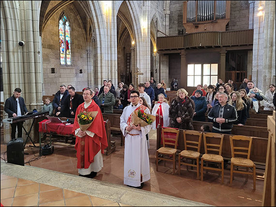 Am participat și la Liturghia de a doua zi de Crăciun în sărbătoarea Sfântului Ștefan. La ambele liturghii au fost impresionante darurile purtate la ofertoriu: harta României cu drapelul, vin și cozonac românesc și multe altele. Un mare rol în toate aceste pregătiri am înțeles că l-au avut și frații și surorile preotului Felician Tiba, toți fiind stabiliți la Libourne.